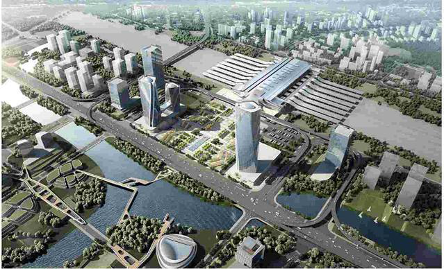 4、人行集散空間及地下服務設施,包括西廣場區(qū)域景觀,地下停車場、換乘大廳、商業(yè)空間及配套附屬用房等。