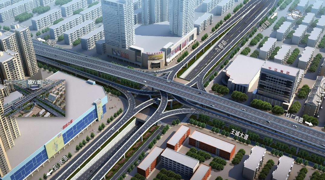 我公司中標為二標段:隴海鐵路橋橋南—王城大橋南,長5.12公里。高架主線為雙向6車道,設(shè)計時速為80km/h,地面為雙向6車道,設(shè)計時速為60km/h。標段內(nèi)含王城大道與紗廠西路互通式立交,沿紗廠西路和解放路向洛陽火車站方向設(shè)置高架橋;王城大道與九都路菱形互通式立交,其中九都路下穿王城大道隧道;局部設(shè)置簡易式上下匝道橋。